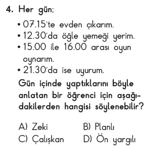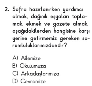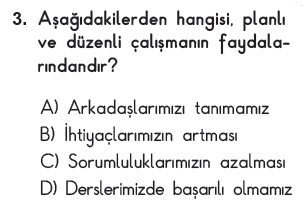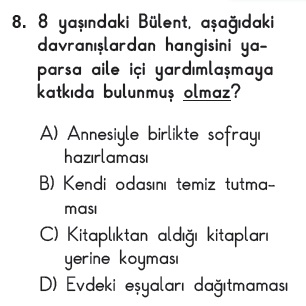 Bu sınavda Evimizde Hayat Ünitesi Yakın Akrabalarım, İyi Günde Kötü Günde, Ev Adresim, Eşyalarımı Kullanırken, Birlikte Karar Veriyoruz, Kullanırken Biriktiriyorum, Yardım Edelim, Zamanımı Planlıyorum, Damlaya Damlaya Göl Olur konularından 10 soru bulunmaktadır.